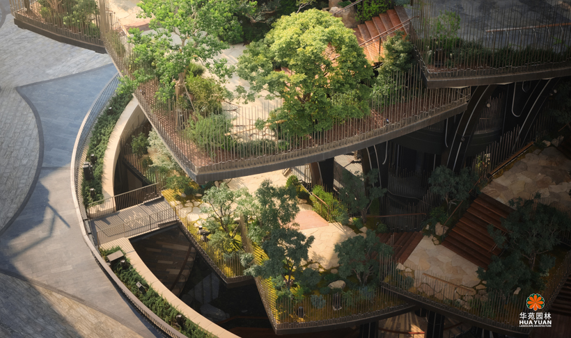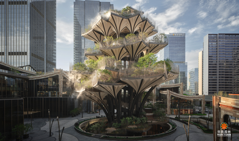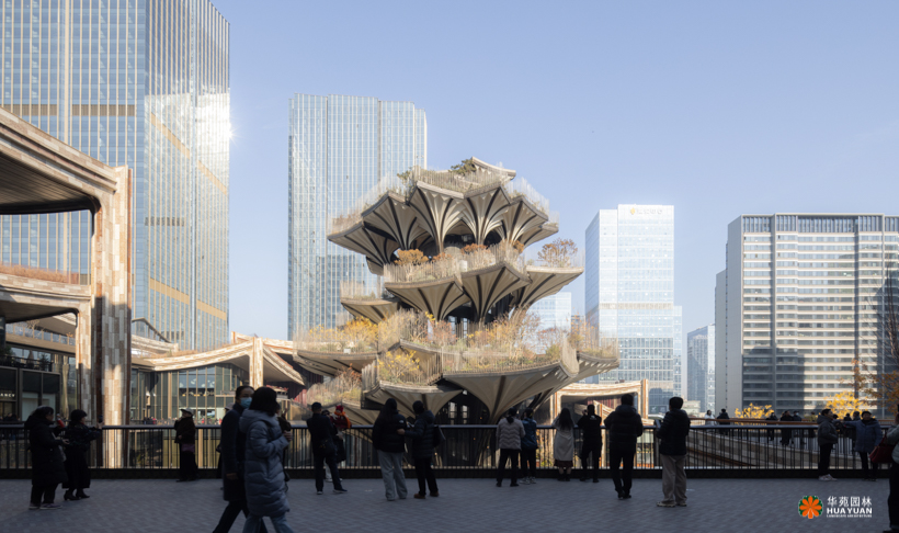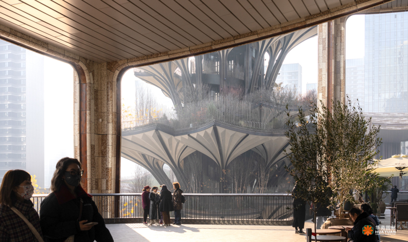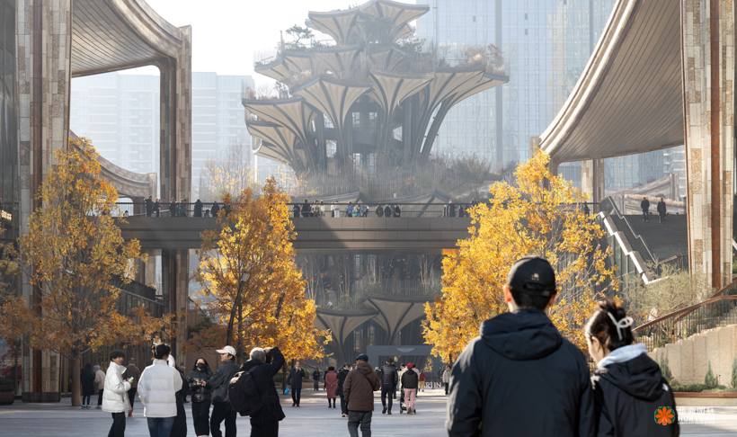 由国际著名建筑师托马斯·赫斯维克设计、灵感来源于西安古观音禅寺千年银杏的“生命之树”,位于西安两大轴线交汇处,成为整个CCBD项目的灵魂。项目景观以丝绸之路为灵感,重现丝绸之上亚欧大陆间七重生态气候景观和地域风貌。