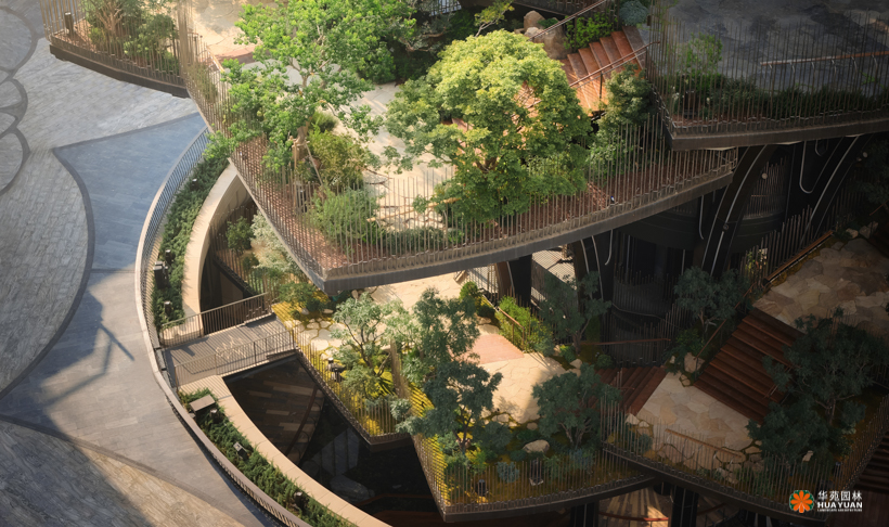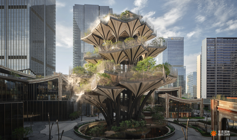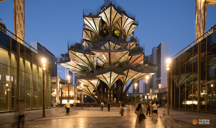 由国际著名建筑师托马斯·赫斯维克设计、灵感来源于西安古观音禅寺千年银杏的“生命之树”,位于西安两大轴线交汇处,成为整个CCBD项目的灵魂。项目景观以丝绸之路为灵感,重现丝绸之上亚欧大陆间七重生态气候景观和地域风貌。