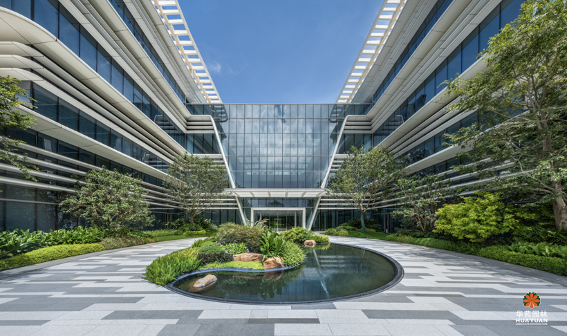 项目濒临海边,设计师沿着艺术、自然、生态的轨迹与项目对话,探寻独特场地精神和情景之美,灵动简洁的水景,打破空间边界,令自然与自我完美交融,形成科技园区的诗意体验。